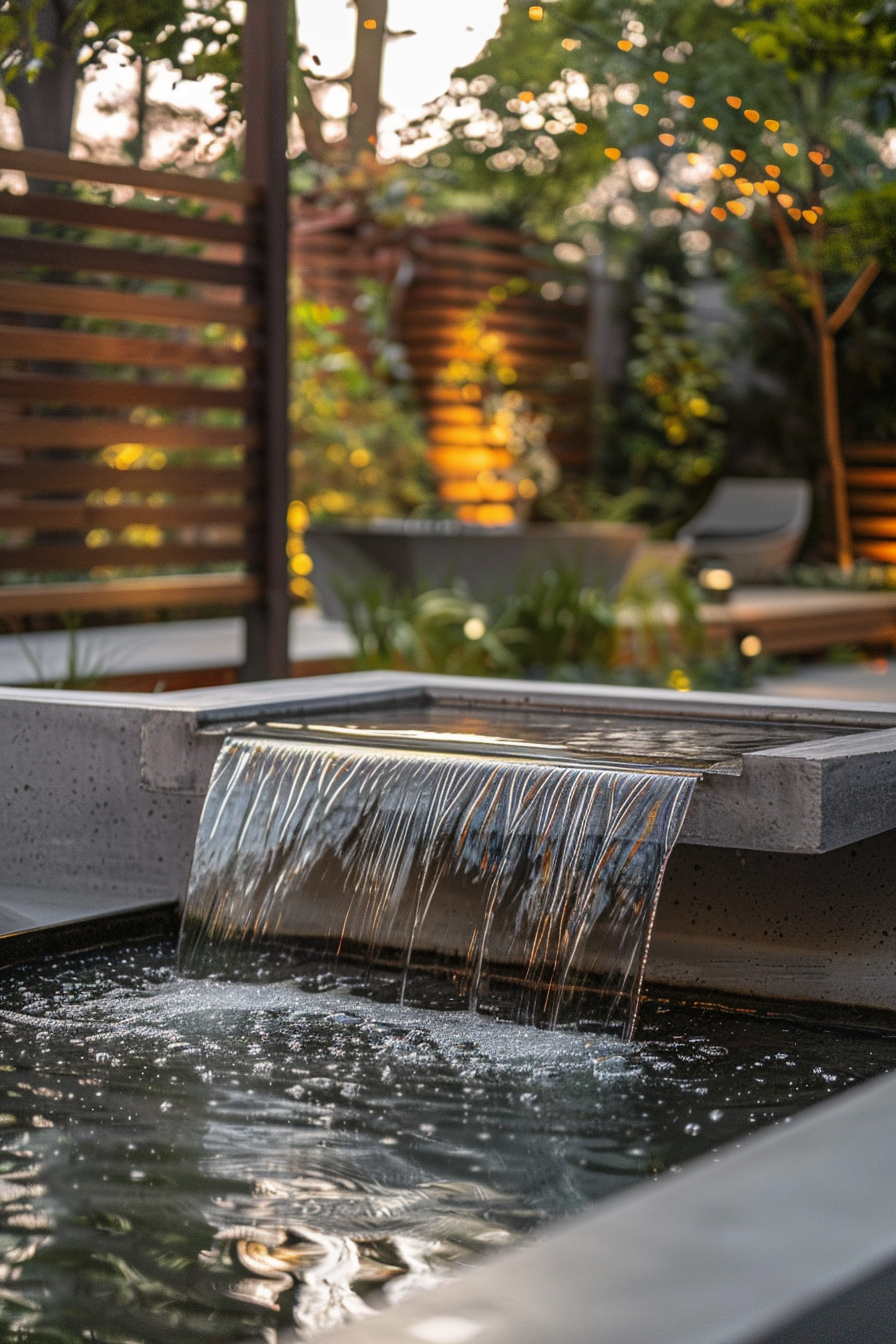 This small space packs a punch with a geometric water feature that flows over concrete.