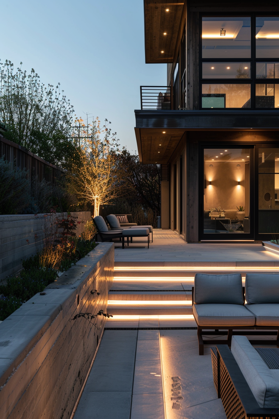 This raised terrace is all about clean lines and raw textures, giving off serious modern vibes.