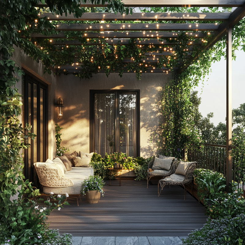 Green Pergola-Style Balcony