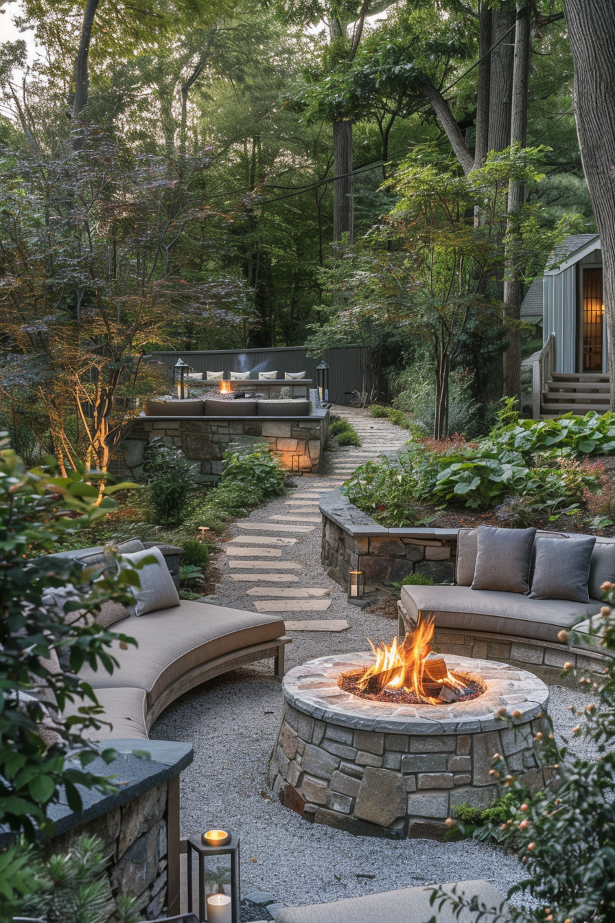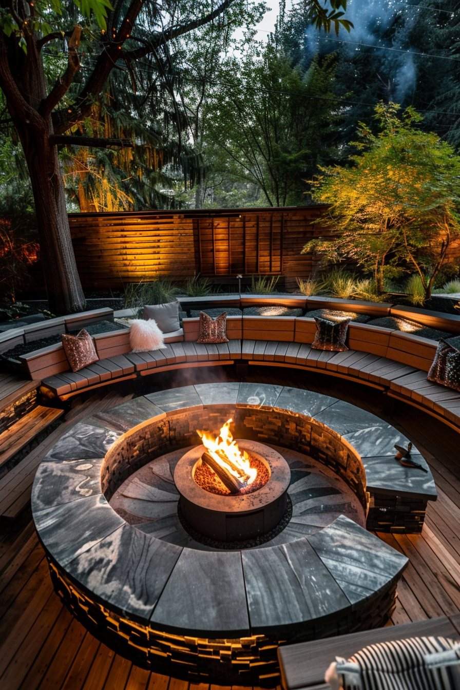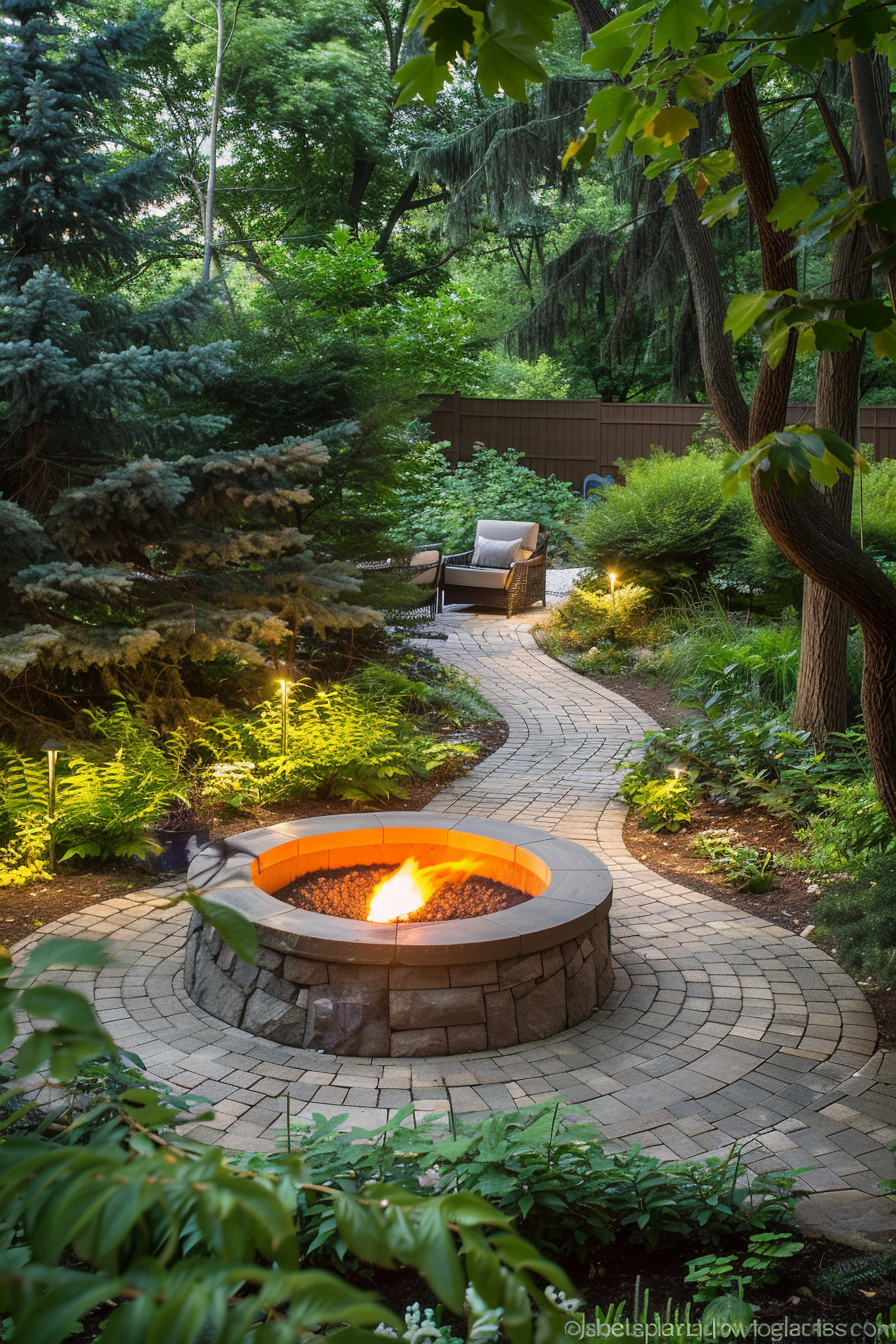Ever crave a tucked-away spot for crisp evenings? This quiet garden cove, reached by winding stone pathways, centers around a glowing fire pit. The outdoor seating curves close, inviting conversation. It’s not just outdoor heating—it’s atmosphere. Everything feels intentional, from the layout to the lingering warmth that draws you in.