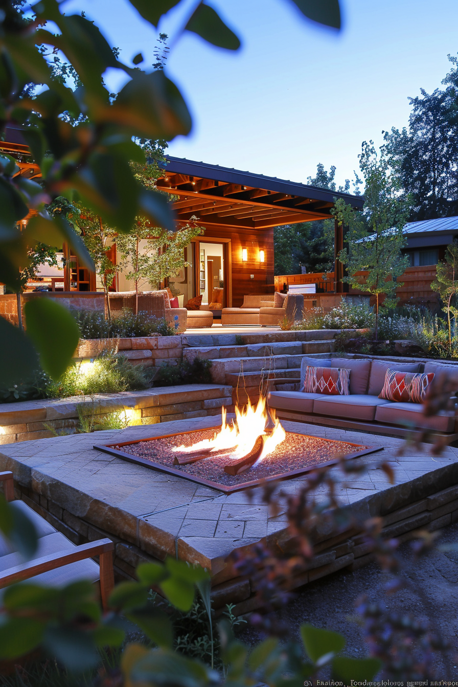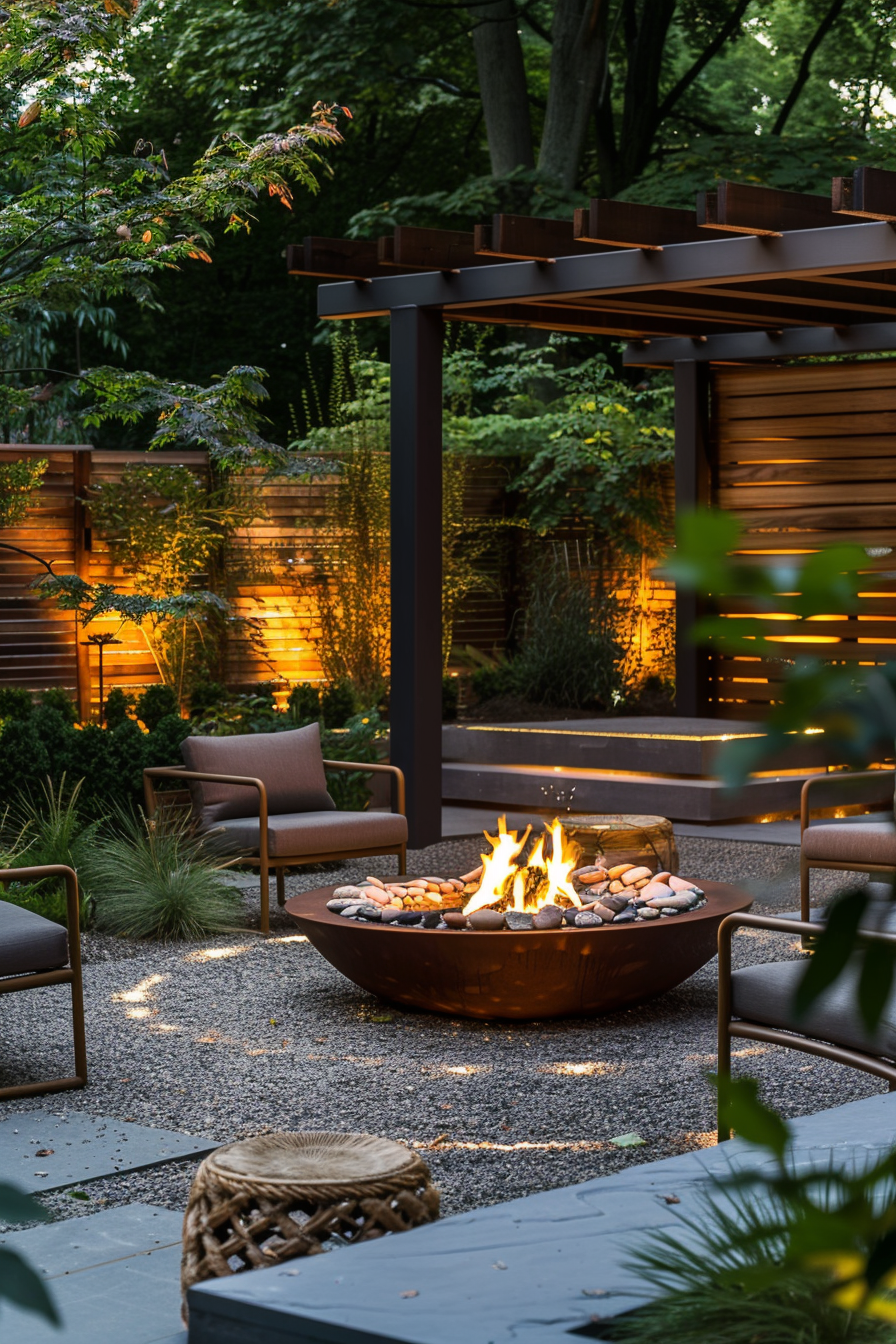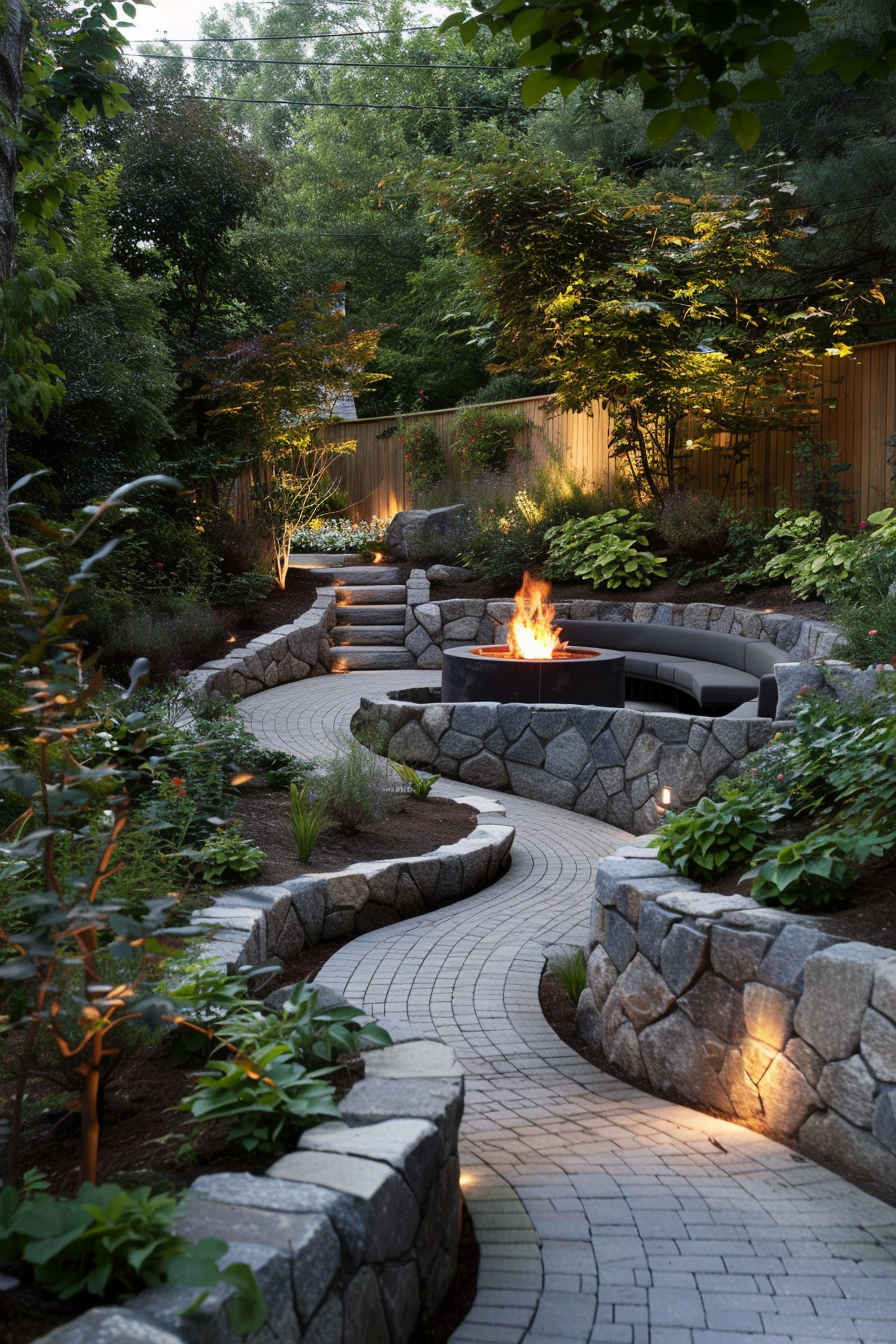 Ever crave a tucked-away spot for crisp evenings? This quiet garden cove, reached by winding stone pathways, centers around a glowing fire pit. The outdoor seating curves close, inviting conversation. It’s not just outdoor heating—it’s atmosphere. Everything feels intentional, from the layout to the lingering warmth that draws you in.